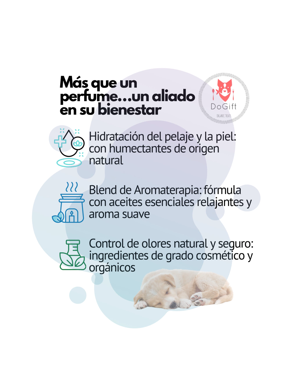 Gracias a sus ingredientes naturales, este perfume no solo deleita con un aroma fresco y delicado, sino que también incluye humectantes que cuidan y mejoran la piel y el pelaje de tu cachorro. Ideal para usar después del paseo, ayuda a eliminar los malos olores y mantiene a tu pequeño amigo limpio y perfumado, incluso cuando no es posible un baño.