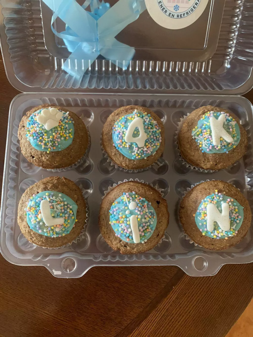 Los pupcakes DoGift son libres de leche, mantequilla y huevo; son elaborados con avena, chía, aceite de oliva y harina integral de trigo. Son adornados con betún elaborado por nosotros y si contiene azúcar a un 50% de uno comercial.