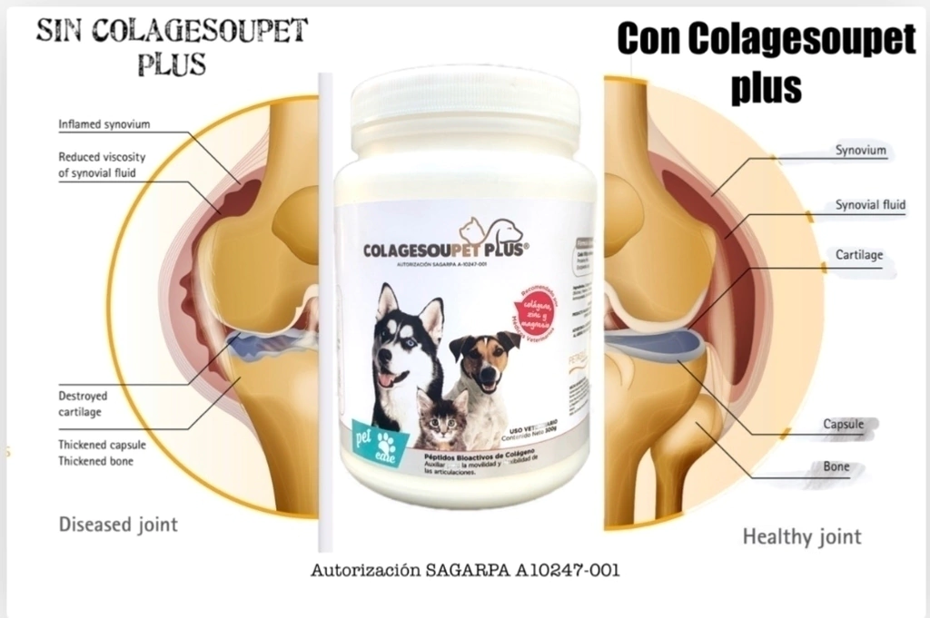 Colagesoupet está formulado específicamente para recuperar y apoyar la movilidad y agilidad de nuestras mascotas ya que contiene:
