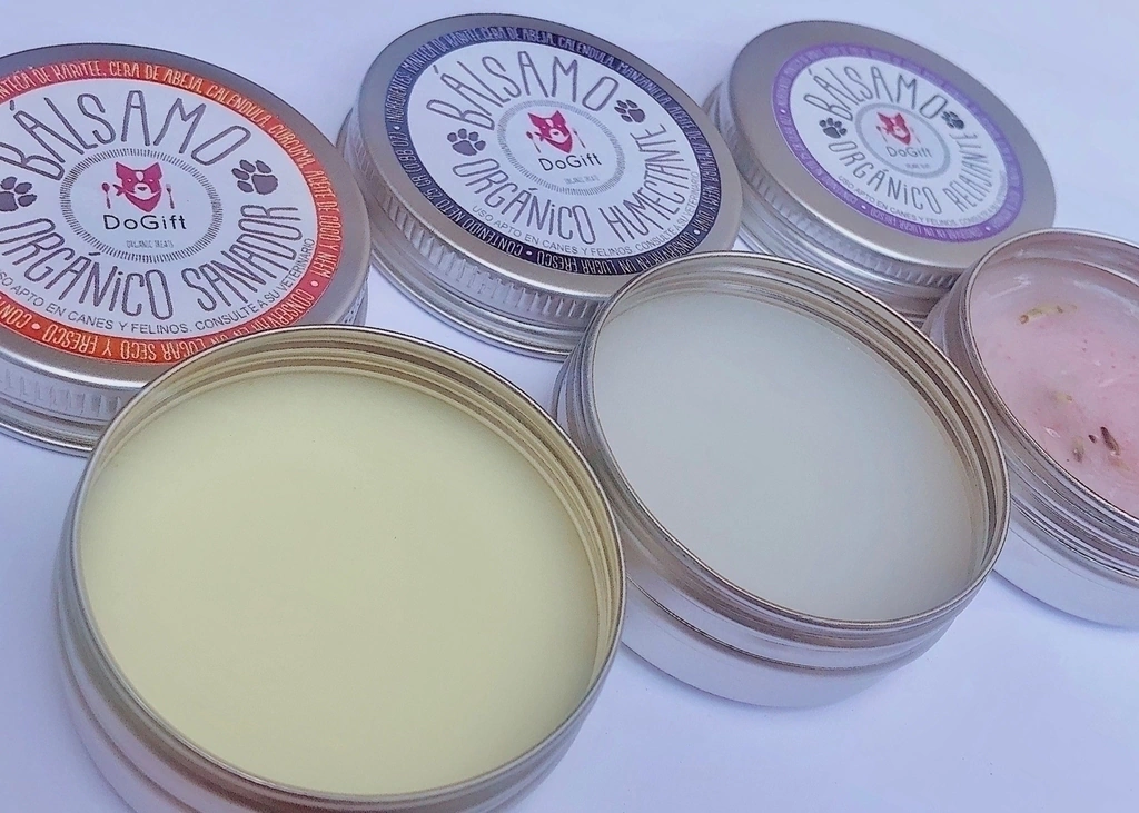 DoGift tiene para tus perrunos bálsamo para sus patitas, orejas y nariz. Este paquete de mayoreo te incluye 8, 12 o 20 bálsamos orgánicos 100% naturales divididos en bálsamo orgánico humectante y bálsamo orgánico sanador todos en Presentación única de 35 gr