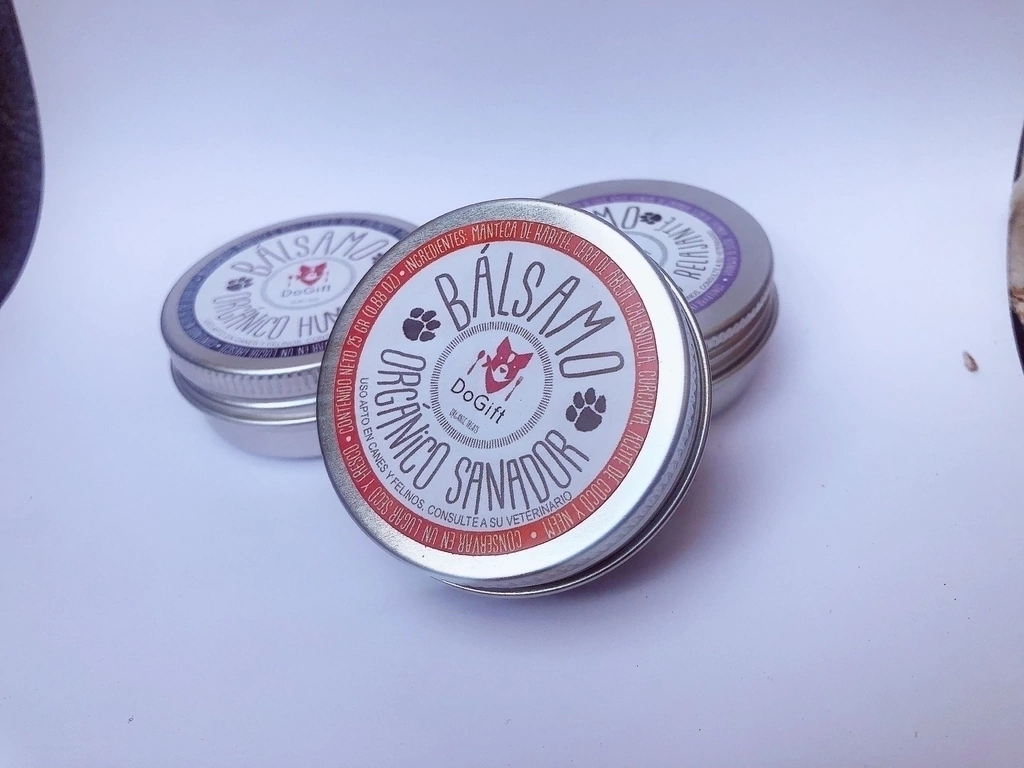 🧡 BÁLSAMO ORGÁNICO SANADOR Propiedades:Bálsamo auxiliar en caso de pequeños golpes, picaduras de insectos, raspaduras ligeras, irritación, cicatrices y rozaduras. Ingredientes y características: manteca de karité, cera de abejas, caléndula, cúrcuma, aceite de coco y neem. Color ámbar medio ( esto depende del concentrado de cúrcuma) el producto viene envasado en pomadera metálica. Modo de empleo: Aplicar 2 a 3 veces al día según sea necesario. Procura distraer al perrito para evitar que se retire el producto del área.USO VETERINARIO